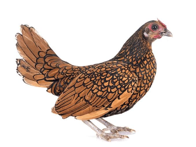The Sebright is a small breed of chicken known for its striking appearance and friendly nature. It is a bantam breed, meaning it is smaller than standard chickens, and is often kept for ornamental purposes. The Sebright has a unique feather pattern with laced edges, giving it a distinctive look. It is also known for being calm and easy to handle, making it a popular choice among poultry enthusiasts.